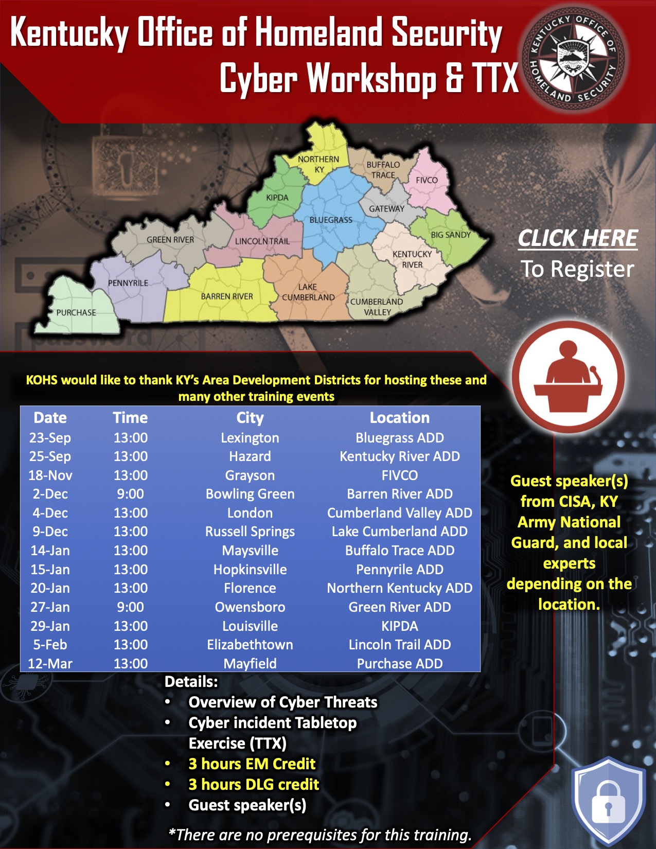 Expert Insight: Guest speakers from organizations such as the Cybersecurity and Infrastructure Security Agency (CISA), the Kentucky Army National Guard, and local experts will provide current and relevant perspectives.